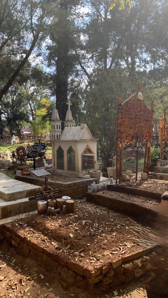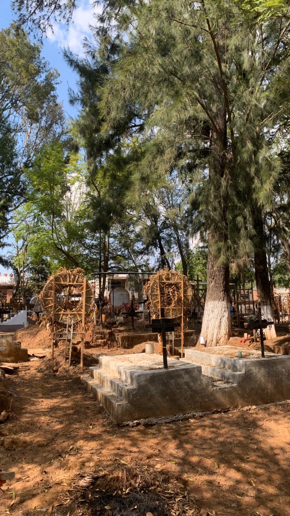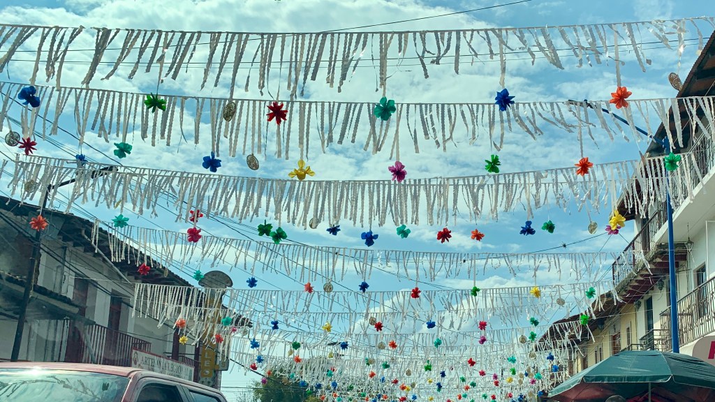 Tzintzuntzan – Tzintzuntzan is located 49 kilometers or 30.5 miles or an hour and ten minutes away from downtown Morelia. Tzintzuntzan was the ancient capital of the purepecha peoples who existed in several Mexican states. Today they continue to thrive in parts of Michoacan such as Patzcuaro and Tzintzuntzan despite historical conflicts with the Aztecs and Spaniards. The town is considered to be an archeological zone with plenty of ancient structures such as the T shaped step pyramids. The culture has a beautiful blend of ancient history combined with living history as the purepecha continue many of their traditions in the modern day. Tzintzuntzan is one town revered for their Day of the Dead ceremonies. Although the Day of the Dead month long celebration has become known outside of Mexico, the residents of Tzintzuntzan reverently care for their cemeteries throughout the year with daily maintenance and upkeep and allowance for respectful visitors. They offer delicious leche milk based ice creams in a variety of flavors. An ample size michelada in a hand created clay pottery vase quickly quenches thirst with a spicy kick. This town boasts many artisan crafts made from madera and palma or wood and palm leaves ranging from baskets to tortilla warmers to holiday decor due to their weaving skills. Additionally, they are avid fishers. Thus, many fish dishes such as charrales, small fried fish caught in the lakes nearby, and large full size fish platters with fish, beans, and rice are the specialty.
