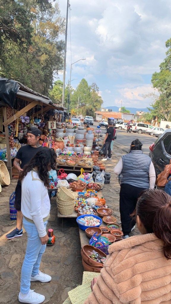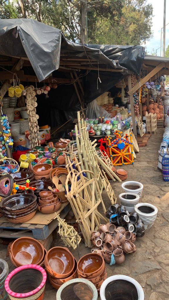Santa Clara del Cobre – Santa Clara del Cobre is located 69 kilometers or 43 miles or about an hour and a half Southwest from central Morelia. It is simply a dip South of Patzcuaro. Santa Clara del Cobre is renowned for their copper crafts from cookware to detailed jewelry pieces (as we highlighted in a prior blog post about Santa Clara del Cobre). Read more in depth about Santa Clara del Cobre here Santa Clara del Cobre Copper Creations. However, they have silver selections as well. While shopping here, be sure to order some tostadas from the central plaza vendors. These tostada creations are unique to Santa Clara del Cobre. They are not even available in the city of Morelia as are many other regional dishes of Michoacán. Or, at least we have not found them anywhere in the city.